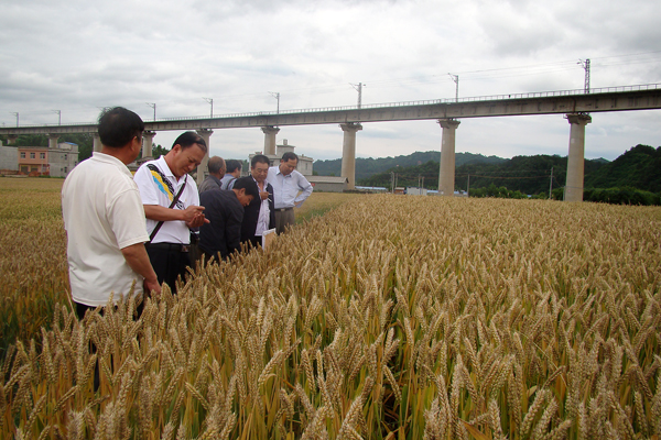 5月28日,陕西省种子管理站研究员姚撑民,西北农林科技大学农学院小麦育种专家高翔、谢惠民教授,商洛市种子管理站副站长贾振江、高级农艺师周龙等5位专家,对我校生物医药工程系高级实验师于浩世选育的小麦新品种“商麦1619”进行了田间预审。校党委副书记、院长张景书接待了专家一行,并对我校小麦育种工作的开展提出了具体要求。