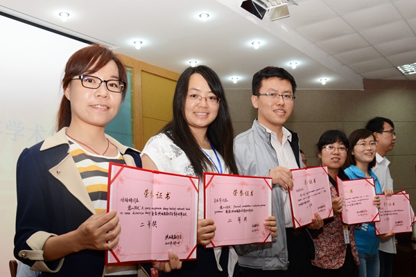 理事会评选出了2014年陕西省数学会青年教师优秀论文奖。徐宗本院士、刘宝盈校长、理事长赵彬、副理事长徐伟分别给获奖者颁奖。